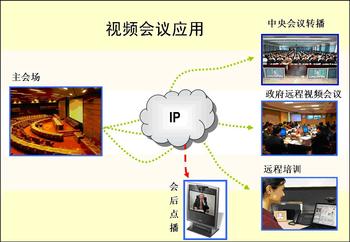 该系统能充分利用企业现有的网络和计算机资源,能在已有的互联网上运行,不需要太多的维护工作量,企业员工可以在任何由网络接入的地方参加会议,使企业高层在瞬息万变的市场竞争环境中迅速做出决策,同时降低企业居高不下差旅和通讯费用,不仅提高工作效率,而且也提高企业系统中各级单位间信息传递沟通的的准确性和及时性。拓扑图如下: