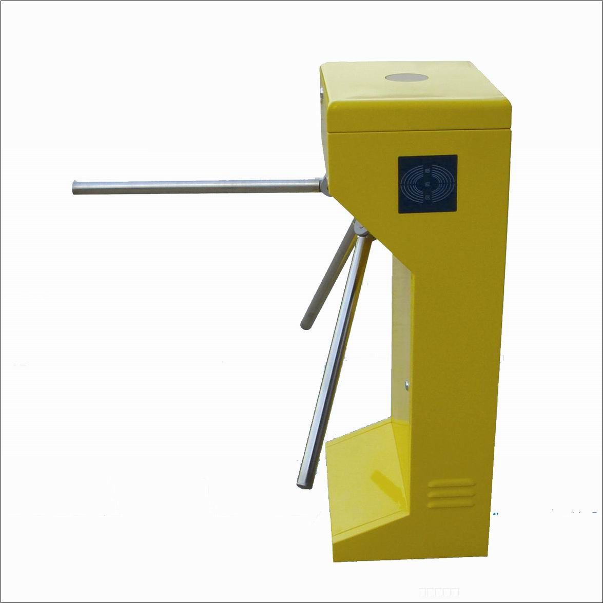 黄颜色烤漆三辊闸 技术参数: 整个产品外形采用国产标准(304号)不锈钢板冲压成型, 造型美观大方,防锈、耐用,能抵抗外力破坏。长方形机箱与通道闸杆构成的通道可为出 入人员提供有序文明的通行方式,杜绝非法出入,并在紧急情况下快速控制落杆或收杆。
